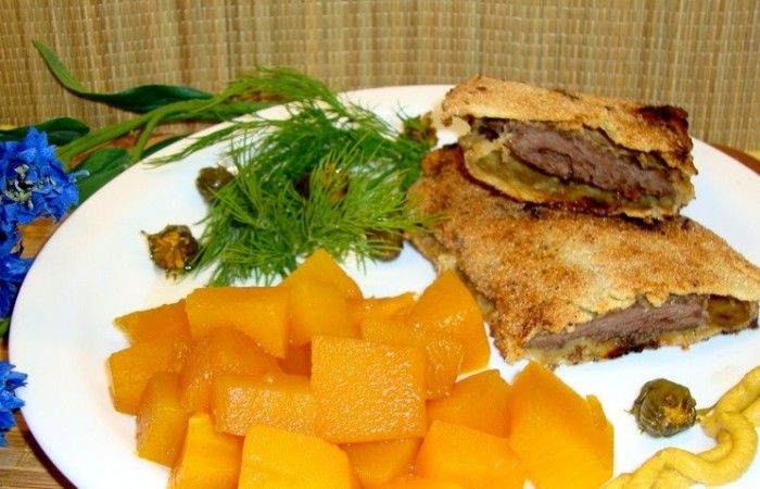 Отбивные из говядины в горчице получаются невероятно сочными и мягкими. Согласно данному рецепту эстонской кухни, мясо подается с маринованной тыквой, отчего вкус блюда довольно интересный и пикантный.