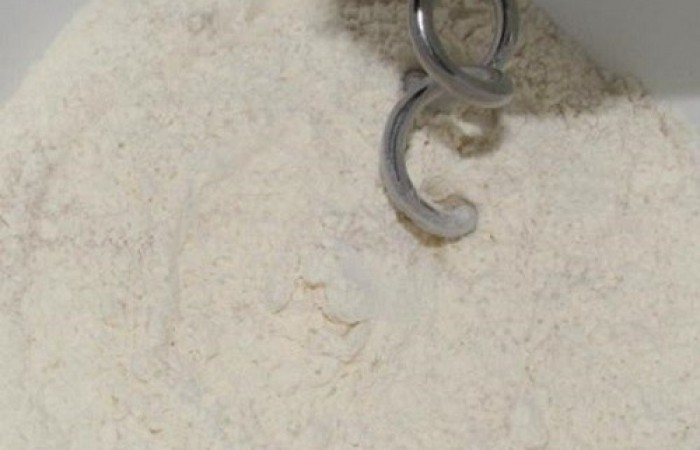 2Сухие дрожжи смешиваем с 2/3 всей муки.