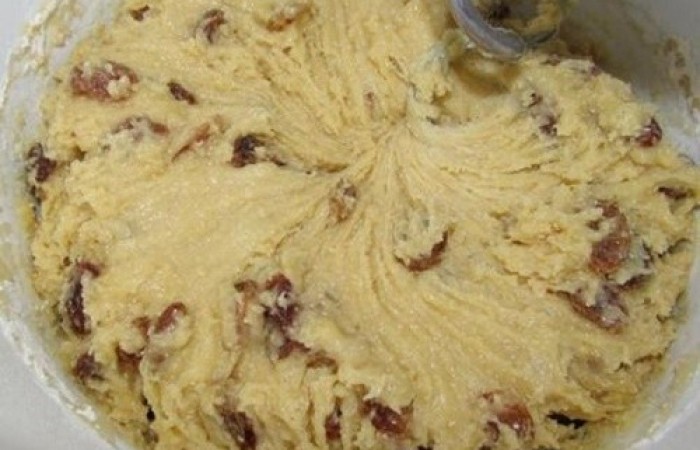 3Добавляем яйца, ванилин, сахар и заранее замоченный изюм.