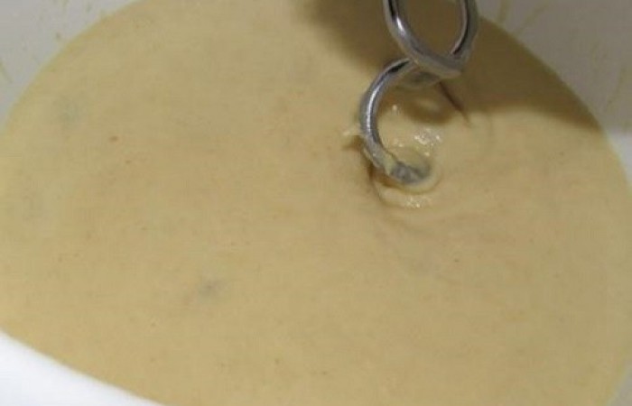 7Размешиваем все ингредиенты с помощью миксера. Получается однородное тесто.