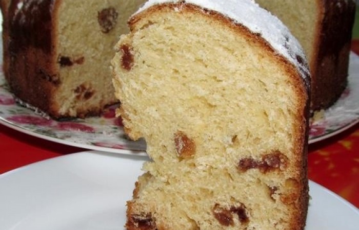11Кулич с изюмом готов. Посыпаем сахарной пудрой и наслаждаемся. Приятного аппетита!