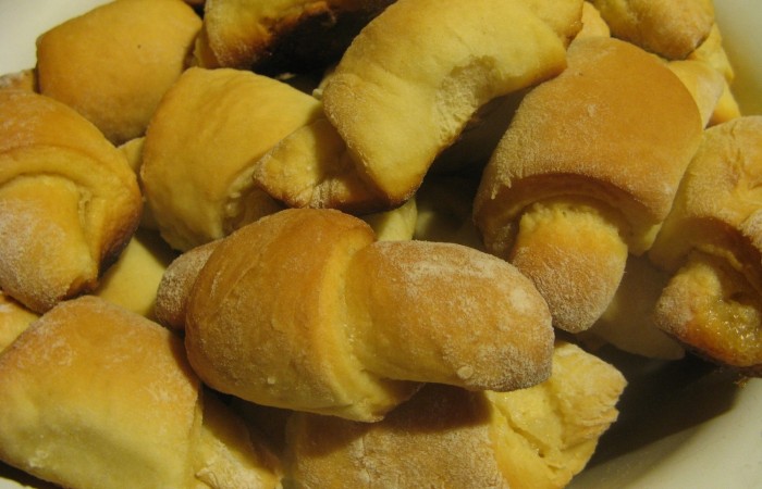 Рогали - популярная выпечка на Рождество и Пасху, рецептов которой существует множество. Здесь представлены нежнейшие рогалики из дрожжевого теста с лимонной начинкой. Кстати, цитрус можно вполне заменить изюмом или другими сухофруктами.