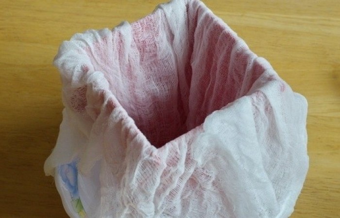 8Закрываем свисающими краями марли. Ставим тарелку с каким-нибудь грузом. Отправляем в холодильник на 12-14 часов.