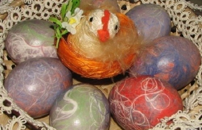 Как приготовить Яйца, крашеные нитками - пошаговое описание