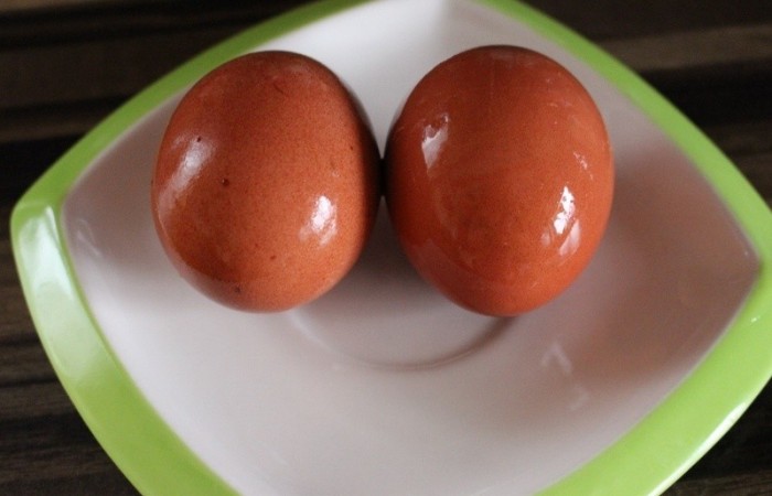 7Крашеные паприкой яйца готовы. Приятного аппетита!