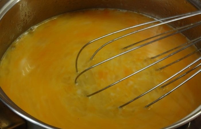 7Когда курд станет густым, как кисель, снимаем его с огня и добавляем сливочное масло. Перемешиваем и остужаем смесь до комнатной температуры, а затем отправляем в холодильник на 5-6 часов.