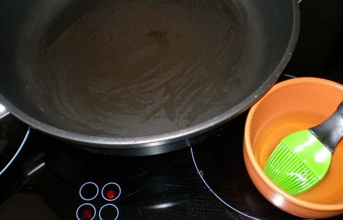 4Разогреваем сковороду и смазываем его растительным маслом.