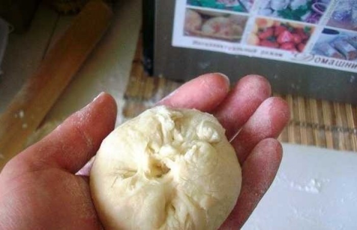 3От теста отщипываем небольшие кусочки и из каждого формируем лепешку. В центр кладем яблочную начинку.
