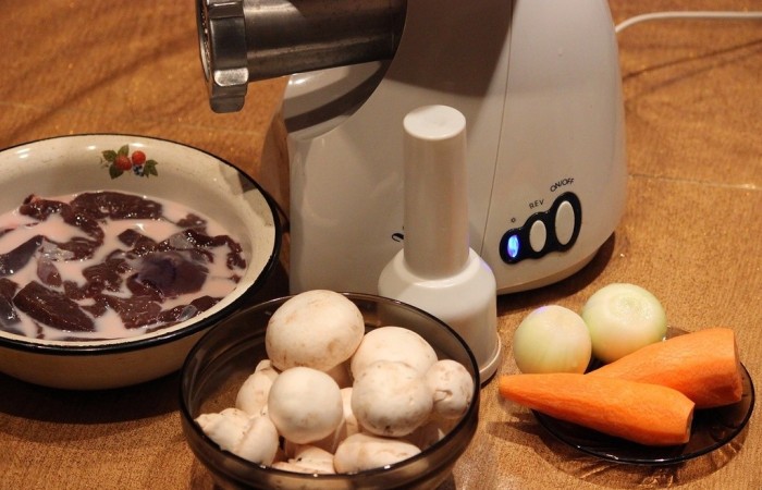 4Все ингредиенты пропускаем через мясорубку (с печени предварительно сливаем молоко).