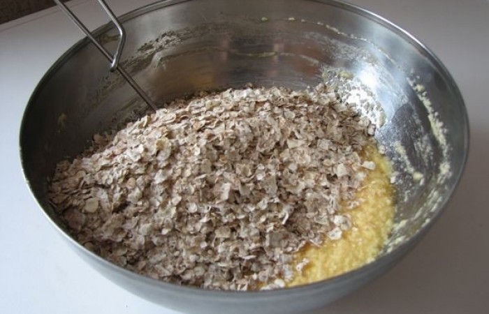 5В сахарно-масляную смесь добавляем овсяно-мучную.