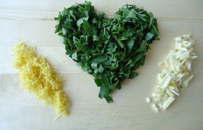 2Петрушку с чесноком рубим ножом, а цедру лимона счищаем.