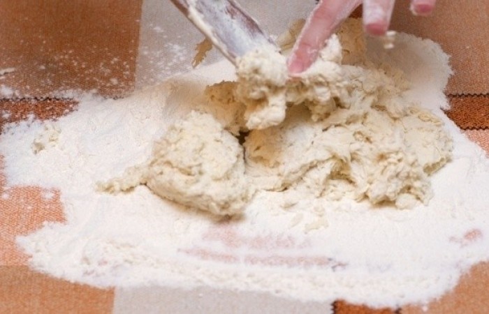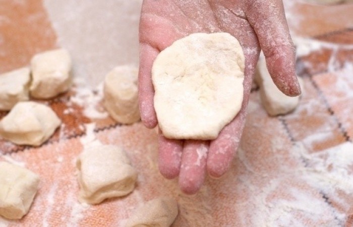8Отрезаем от теста полоску шириной примерно 2 см.