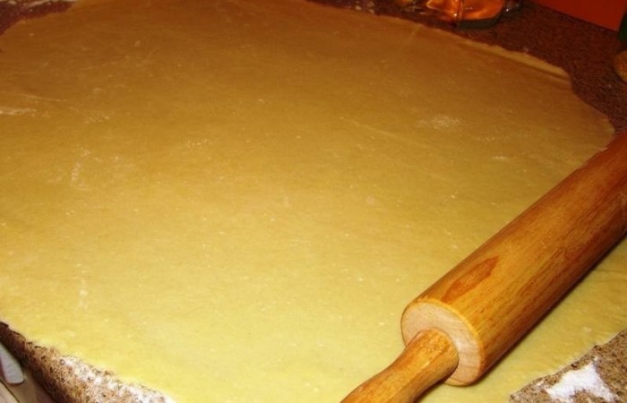 9Тесто делим на 2-3 части и каждую раскатываем в тонкий пласт.