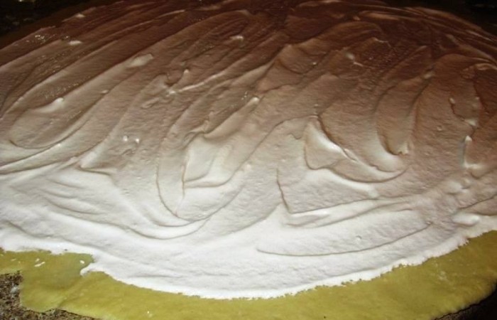10Смазываем пласт взбитыми белками.