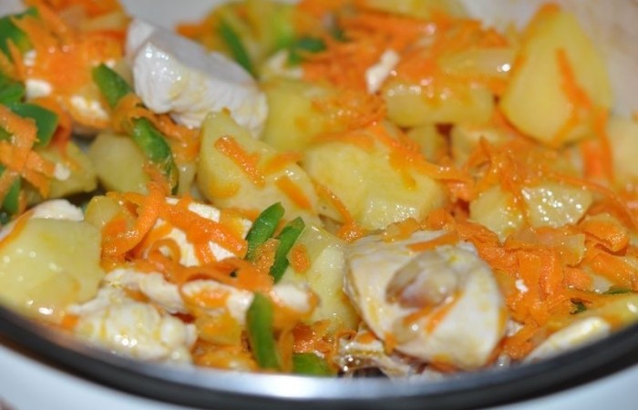 Как приготовить Тушеная картошка с курицей - пошаговое описание
