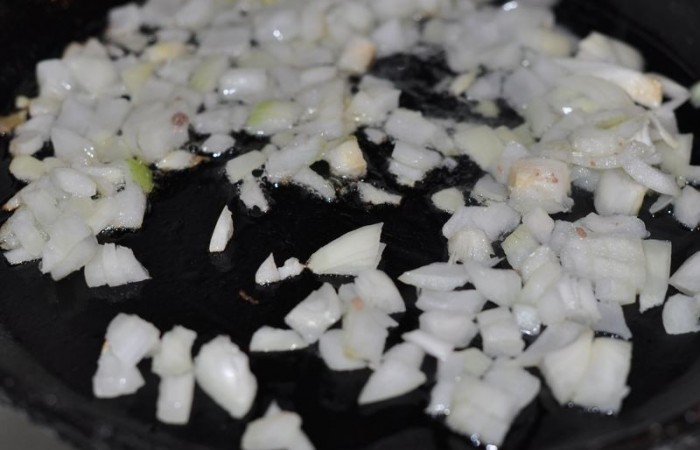3В отдельной сковороде обжариваем до прозрачности измельченный лук.