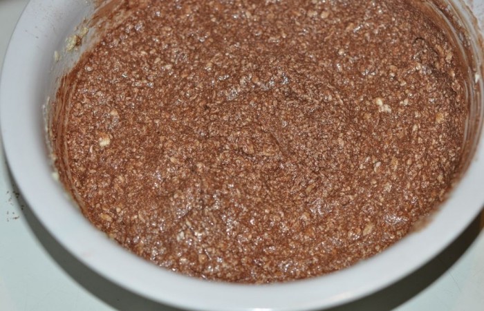 2Яйца растираем с сахаром и размягченным сливочным маслом. Добавляем гашеную уксусом соду, какао и соль. Тщательно все перемешиваем.