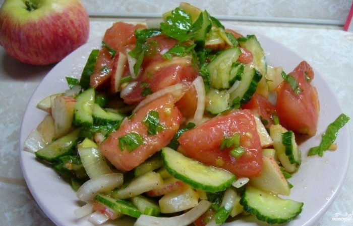 Как приготовить Салат с помидорами и яблоками - пошаговое описание