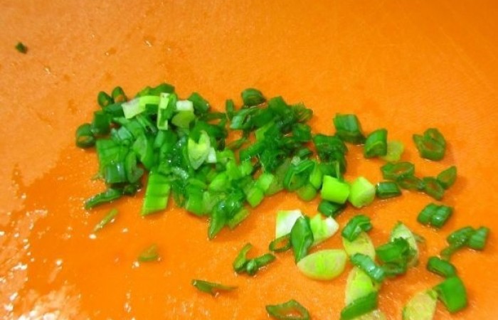2Зеленый лук нарезаем колечками.