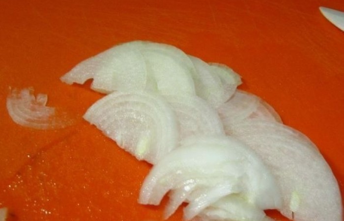 3Репчатый лук нарезаем полукольцами или соломкой.