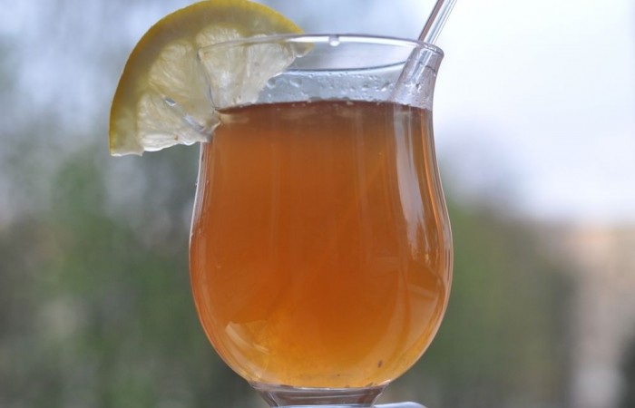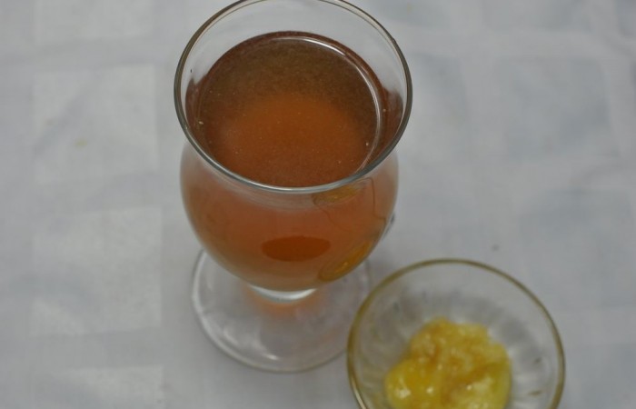 3Лимонный сок смешиваем с яблочным. Подаем напиток с медом.