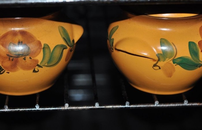 4Драники выкладываем в горшочки.