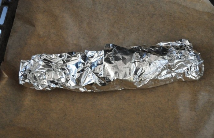 2Отправляем в духовку на 30 минут, предварительно разогретую до 180 градусов. Аккуратно разворачиваем фольгу