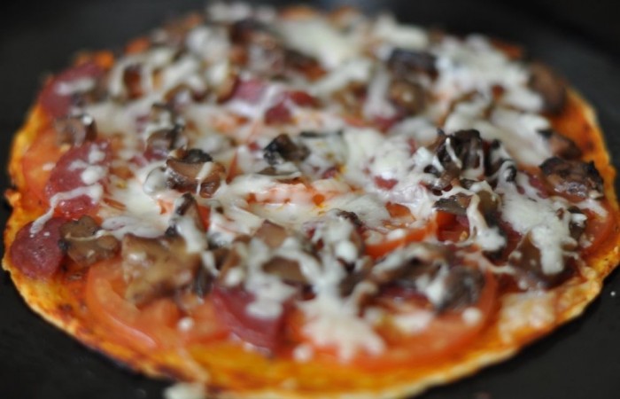 В данном рецепте представлена аппетитная домашняя пицца с копченой колбасой, шампиньонами и моцареллой. Тесто для блюда готовится без использования дрожжей, а следовать, довольно быстро и совсем не хлопотно. Начинку для пиццы можно по желанию заменить на другие ингредиенты, это не принципиально.