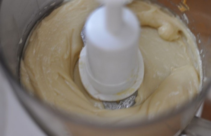 4Постоянно взбивая смесь добавляем порционно, по столовой ложке, растительное масло. Смесь должна загустеть.