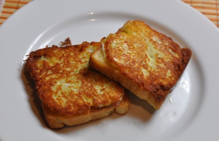 2Обжариваем тосты с двух сторон до золотистой корочки.