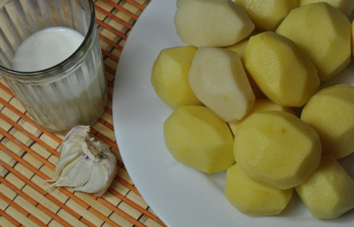 1Подготавливаем необходимые ингредиенты. Картофель с чесноком очищаем.