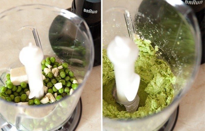3В чашу блендера выкладываем горох и фету. Пюрируем до однородной консистенции.