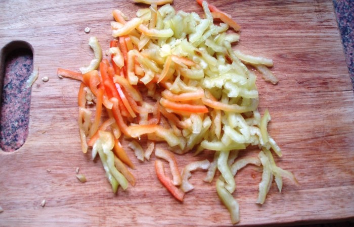 3Морковь нарезаем тонкой соломкой (можно натереть на крупной терке).