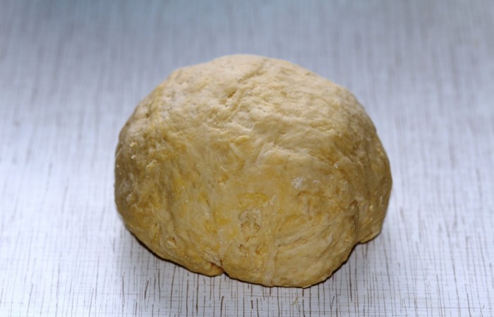 2Замешиваем крутое тесто. Оборачиваем его в полиэтилен и оставляем в покое при комнатной температуре на полчаса.