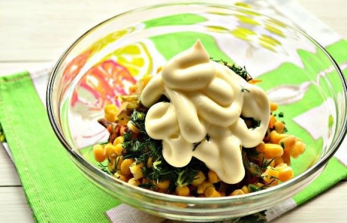 10Заправляем салат майонезом.