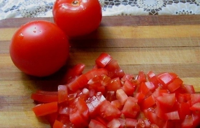 4Помидоры нарезаем небольшими кубиками.