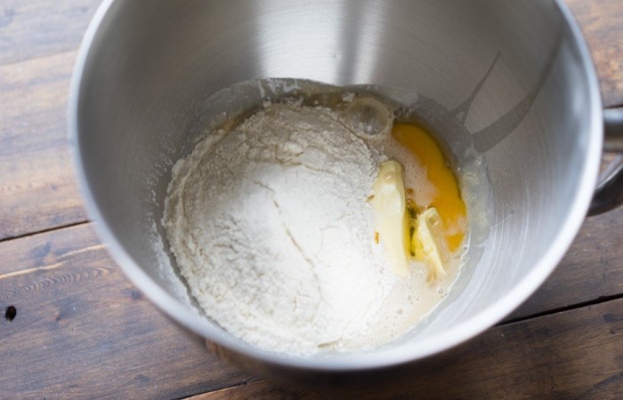 5Вливаем дрожжевую смесь.