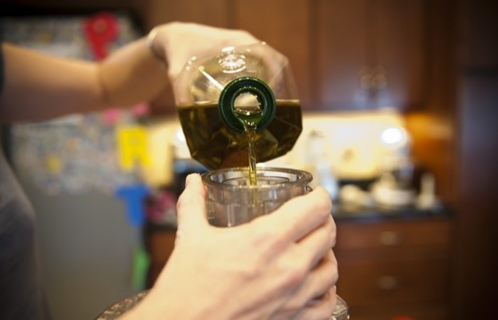 5Постепенно добавляем оливковое масло и продолжаем взбивать.