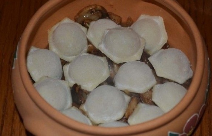 Как приготовить Пельмени, запеченные с грибами и сыром в горшочке - пошаговое описание