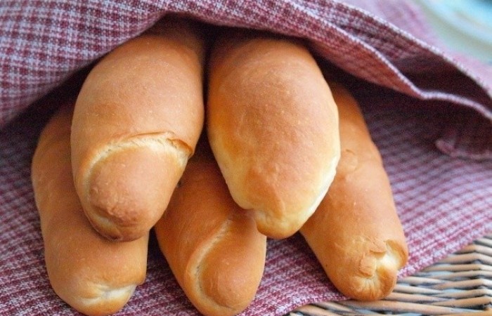 2Если у вас нет специальных булочек для французского хот-дога, используем обычные. Для этого срезаем верхушку и аккуратно делаем отверстие, доставая мякоть. Подсушиваем булочки в духовке или на сухой сковороде.