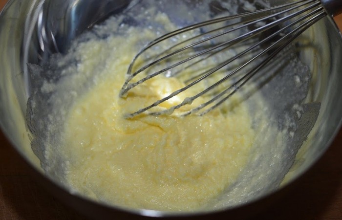 3Добавляем размягченное сливочное масло и растираем до однородности.