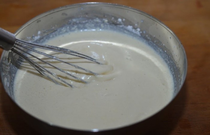 4Вливаем молоко и перемешиваем.