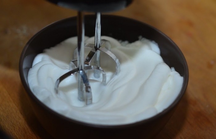 7Белки взбиваем с помощью миксера до твердых пиков на медленной скорости в течение 5 минут.