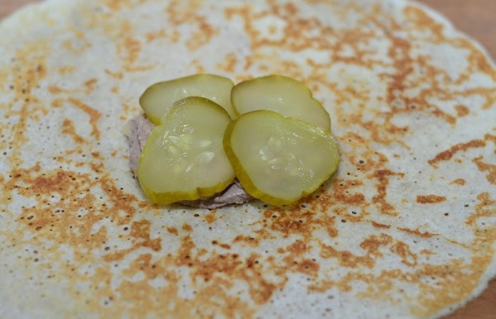 13В центр блинчика выкладываем столовую ложку паштета.