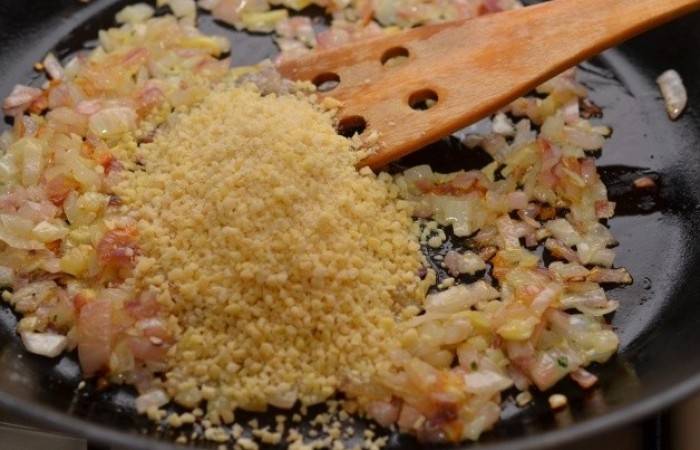 8Добавляем молотый миндаль ,перемешиваем и жарим еще несколько минут.