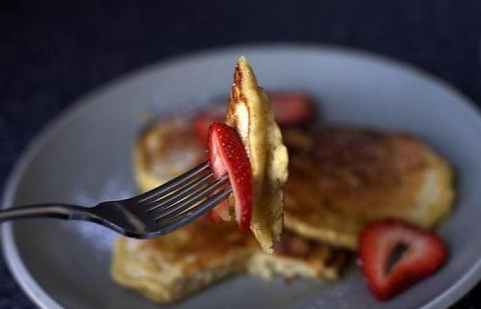 4Оладьи подаем с клубникой или медом. Приятного аппетита!